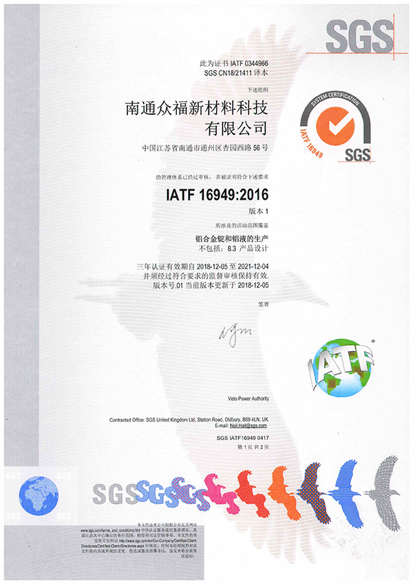 南通众福IATF证书