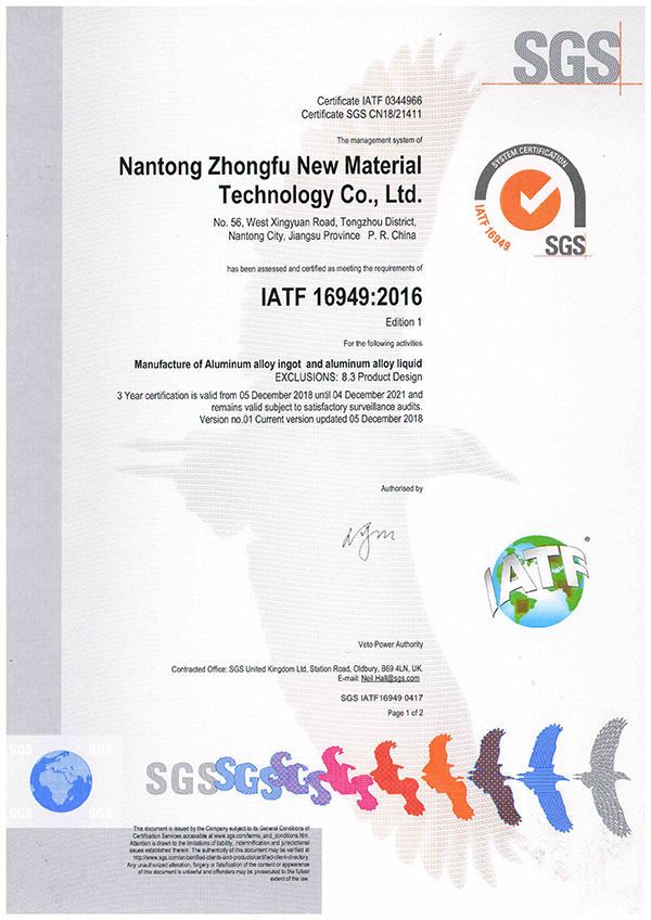 南通众福IATF证书英文